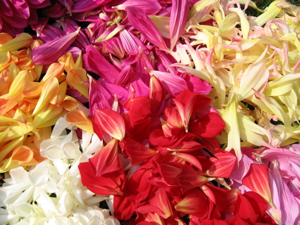 Gezupfte Dahlienblüten kann man sehr gut als
