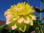 Diese Dahlie kann ich gut empfehlen, sie blüht reichlich und in strahlendem, nicht verblassendem Gelb. Sie hat sich zur prächitgen Pflanze entwickelt, die Blüten sind groß, aber dennoch auch zum Schnitt geeignet. Ein Blickfang im Garten.