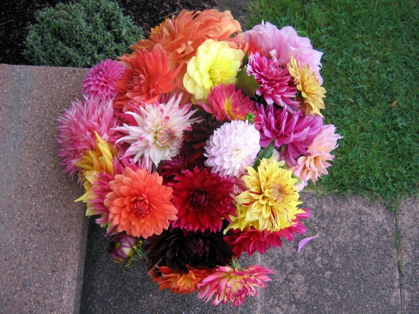 Jeden Morgen schneide ich einen Eimer voller Dahlien zum Verschenken. Es ist doch erstaunlich,