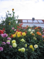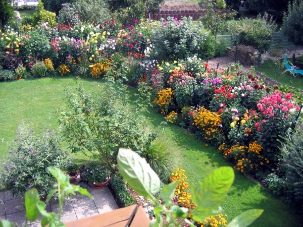 1/3 des Dahlien-Gartens kann man vom Balkon aus sehen. Es ist eine tolle
