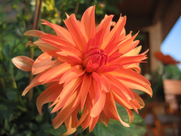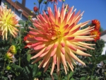 aufgegangen und überwacht das Gartengeschehen. Inzwischen sind die meisten Dahlien aufgeblüht,