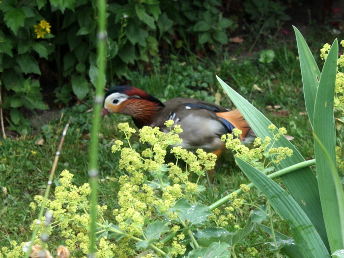 Seit einigen Tagen bekommen wir morgens am Springbrunnen Besuch einer besonders schönen und neugierigen Ente aus der Nachbarschaft, dem