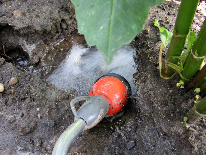 es war erstaunlich wie lange das Wasser gelaufen ist. Danach mußte ich alles wieder festtreten, manche Knollen hingen regelrecht in der Luft.