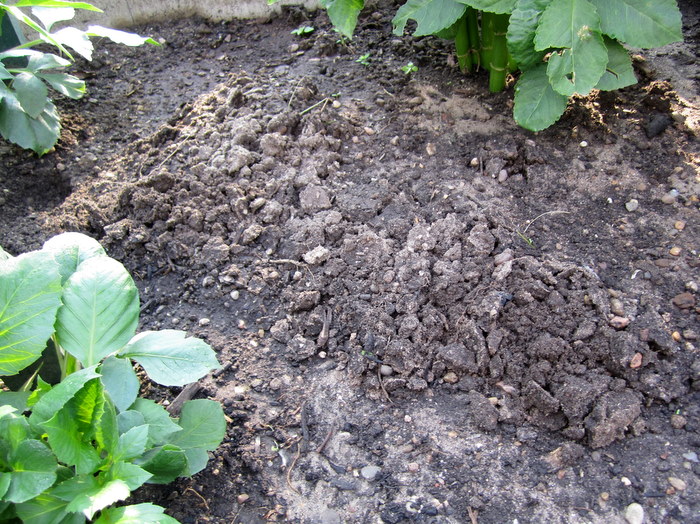 Aber was muss ich am nächsten Morgen entdecken - Hügel - Gänge unter sämtlichen Dahlien - und auf einmal hat sich da auch noch was bewegt !!!