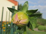 Eine Blüte nach der anderen geht auf, heute ist es die 'Sorbet'. Die Blüte schaut in Nachbars Garten, wohl als Dank dafür,