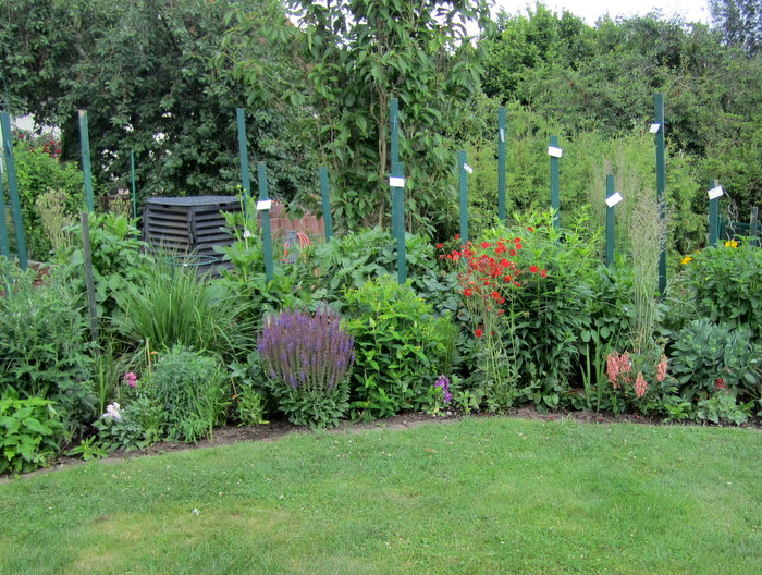 Allmählich bekommt der Dahlienstreifen Farbe ! Auf diesem Stück habe ich 10 Dahlien weniger gepflanzt,