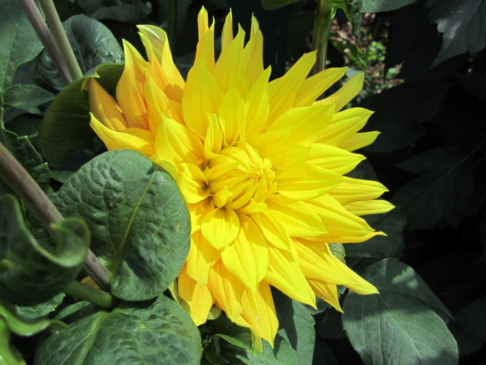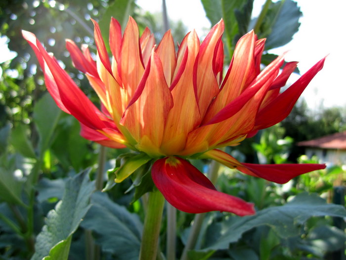 Meine Lieblings gelb-rote Dahlie ist die 'Hapet Allerlei'. Sie hat für meinen Geschmack die richtige Blütengröße