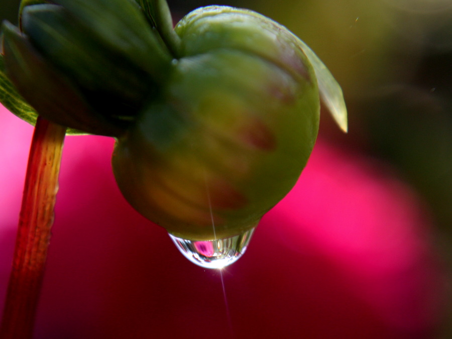 Nachdem es in der Nacht heftig geregnet hat, mal wieder ein Tropfen-Bild-Versuch. Der Regen hat sehr gut getan, nur wenige Blüten hängen, die
