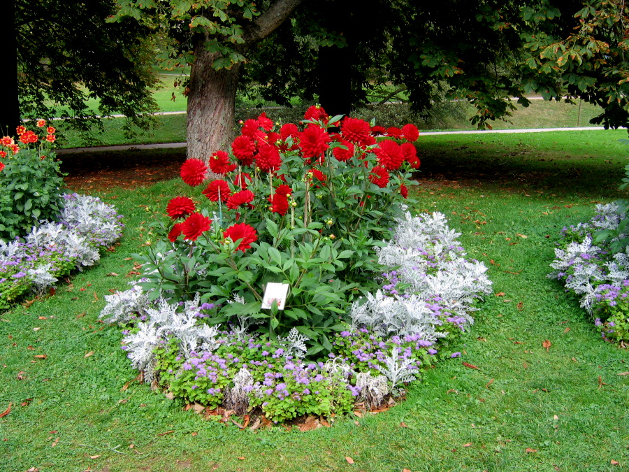 Auf einer Bank gegenüber diesem Dahlienbeet in Baden-Baden saßen wir
